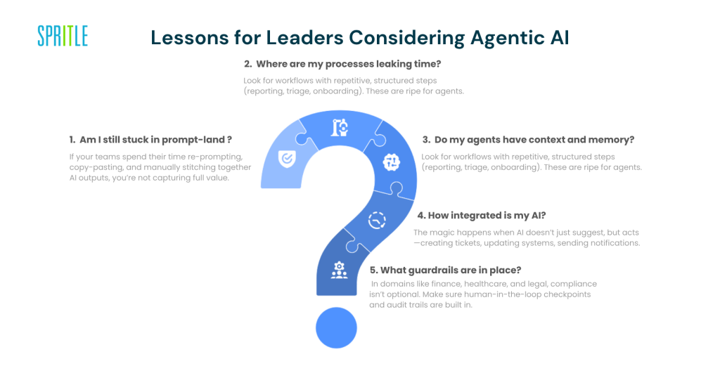 The magic happens when AI doesn’t just suggest, but acts—creating tickets, updating systems, sending notifications.