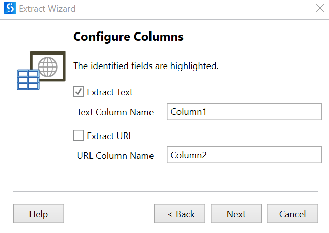 Configure the Columns so that the extracted data are saved in the type of Format.