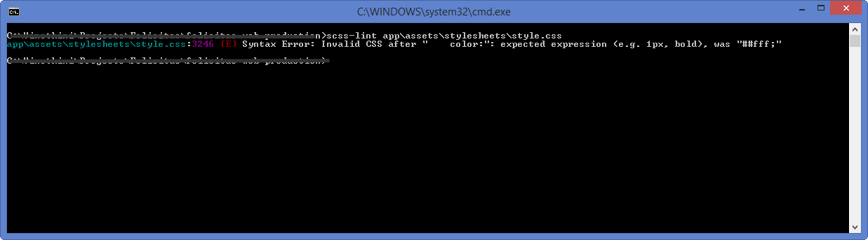 From this error message we couldn’t locate the file where this particular invalid CSS was present. After few minutes of unsuccessful manual attempts, I decided to use the scss-lint gem which scans all your CSS & SCSS files and reports if there are issues with them.