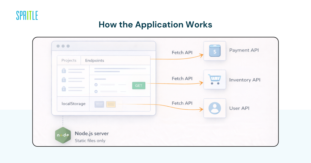 - API requests are executed directly from the browser using the native `fetch` API