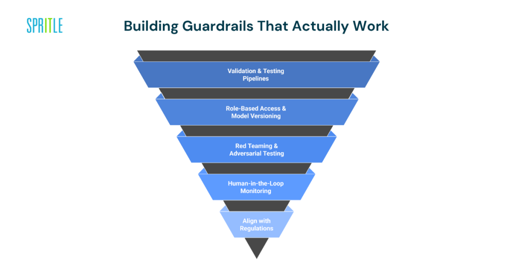 No guardrail system is complete without human oversight. Build dashboards for real-time feedback, alerts for high-risk responses, and escalation paths for manual review.